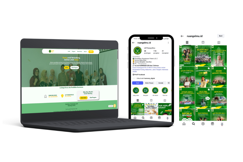 “Hermony Digital membantu kami punya website, CBT, dan media sosial yang dikelola rapi. Sangat memudahkan kegiatan belajar dan promosi sekolah.” — Tim Ruang Elmu